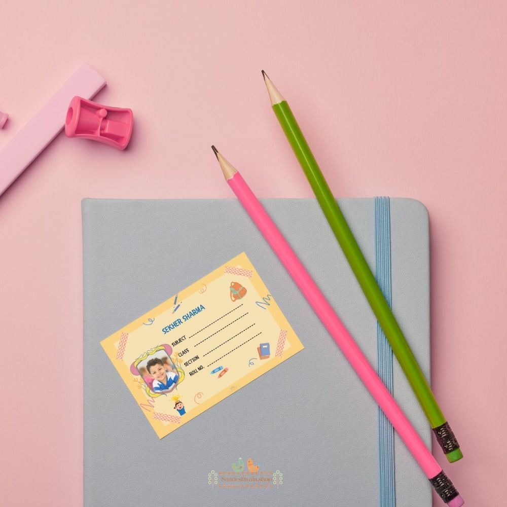A lively mix of school icons like pencils, rulers, and books — designed to make learning fun! Perfect for labeling homework copies, craft books, and art journals. Durable, easy to write on, and designed for maximum visibility and joy.