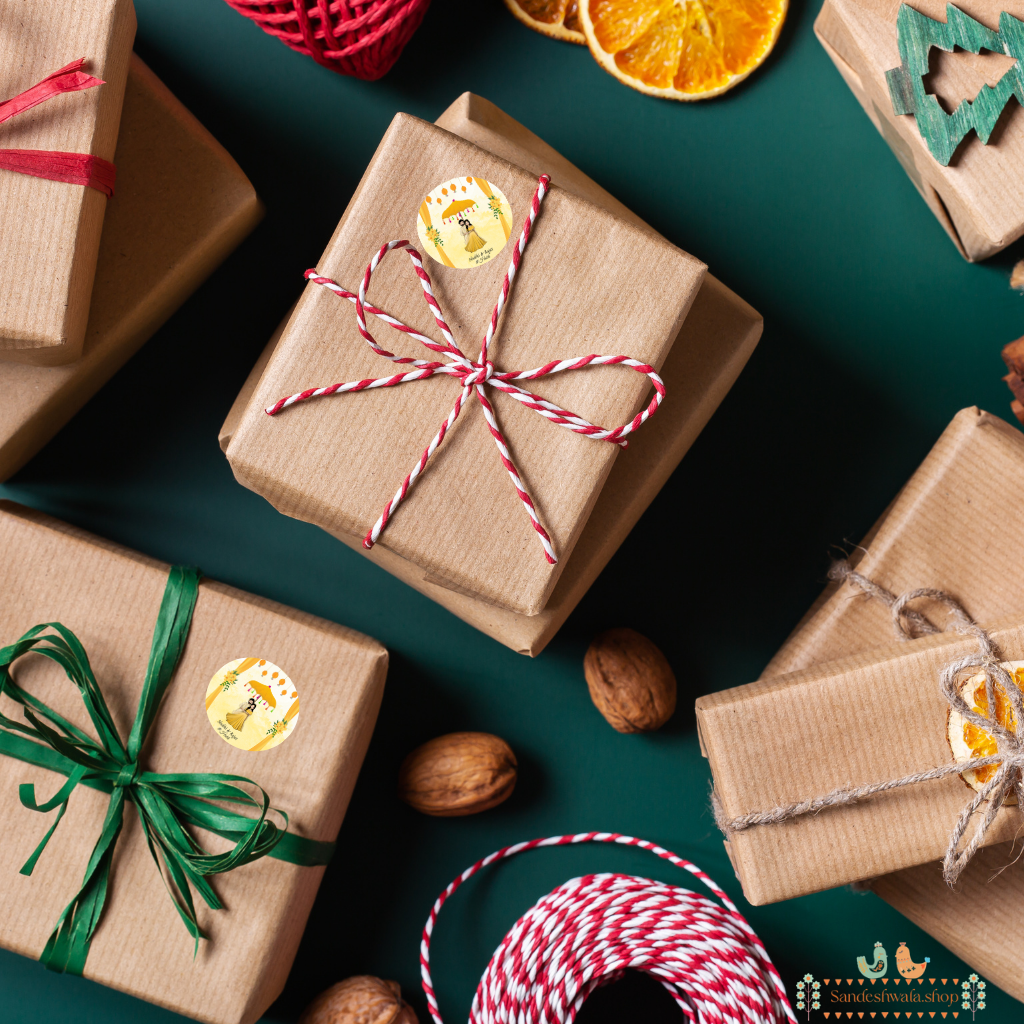 Perfect for turmeric jars, haldi trays, sweet boxes, favour bags, hampers, and gift packaging, this sticker is printed on premium adhesive paper for crisp quality and strong sticking. A beautiful way to enhance all your Haldi celebration giveaways.