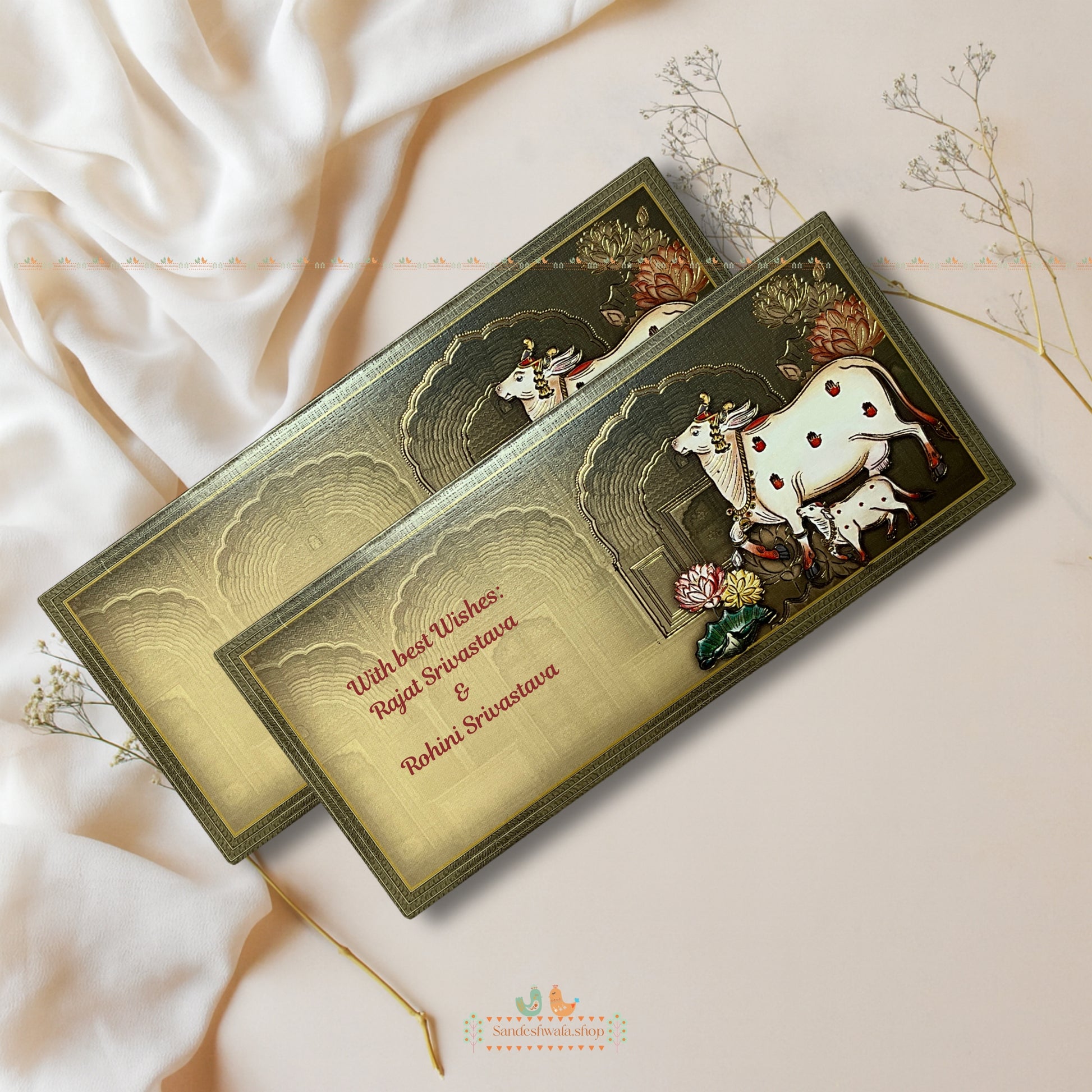 Temple Cow Theme Shagun Envelope - Essential Collection